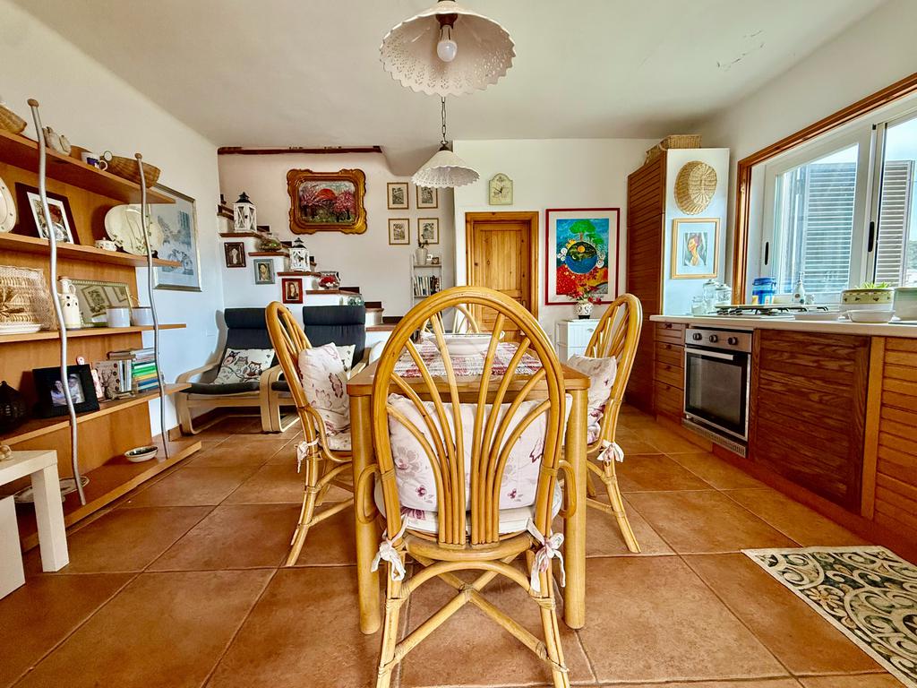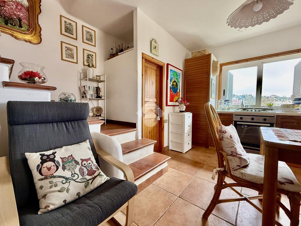 Dalla veranda si accede all’abitazione, dove troviamo un accogliente ambiente cucina con sala da pranzo; da qui si raggiunge una pratica cantinola posta piano interrato. Un disimpegno conduce alla zona notte composta da due ampie camere letto matrimoniali e un bagno con doccia. Frontalmente alla sala da pranzo, tramite una comoda scala interna, si accede a un ampio e luminoso salone, dal quale si può godere dell’accesso a una spaziosa terrazza angolare, ideale per momenti di relax. Dalla terrazza si raggiunge inoltre il lastrico solare sovrastante, da cui è possibile ammirare una splendida vista panoramica sulla città e sul mare.